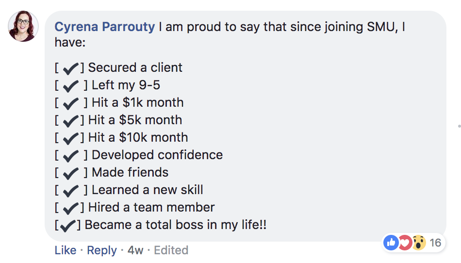 "RACHEL IS THE REAL STUFF. Social Media United is not only jam packed with amazing knowledge and insight, but it’s ACTIONABLE. Too many courses regurgitate what’s on the internet, but she is obviously speaking from experience, passion and excitement to get yourself MOVING to SMM success, not just learning."